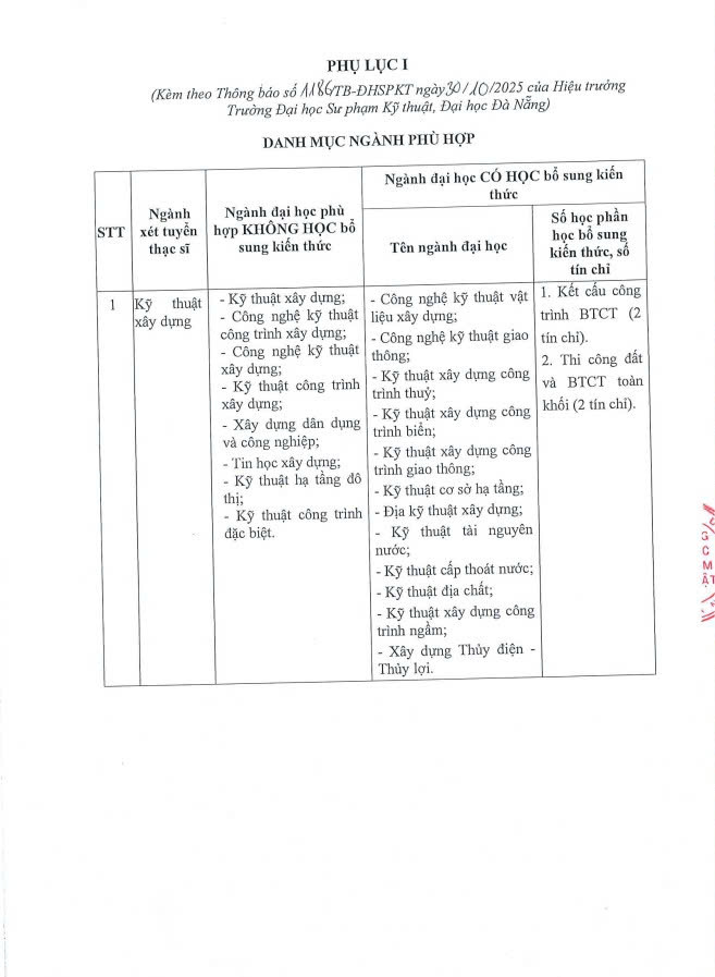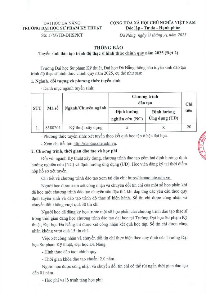 TUYỂN SINH 2025 - Đợt 2 - THẠC SĨ NGÀNH KỸ THUẬT XÂY DỰNG